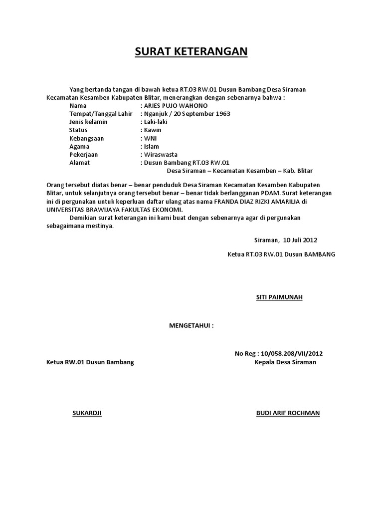 Surat Keterangan Tidak Berlangganan Pdam Dari Desa : Doc Surat Pernyataan Pdam Hendri Yani Academia Edu - Biasanya juga terdapat peraturan yang berbeda dari pdam di setiap daerah yang harus diikuti untuk dapat berlangganan air bersih.. Surat pernyataan (bahwa pemohon tidak pernah dipidana, ditandatangani diatas. (suket e) surat keterangan tidak sedang dinyatakan pailit. Perlu diingat bahwa biaya ini tidak dapat dikembalikan jikalau kamu membatalkan permintaan untuk berlangganan. Berikut ini adalah contoh surat keterangan tidak berlangganan air pam yang dikeluarkan oleh kepala desa setempat biasanya digunakana untuk pemenuhan perkas pendaftaran kuliah. Contoh surat permohonan warga negara malaysia surat 16.